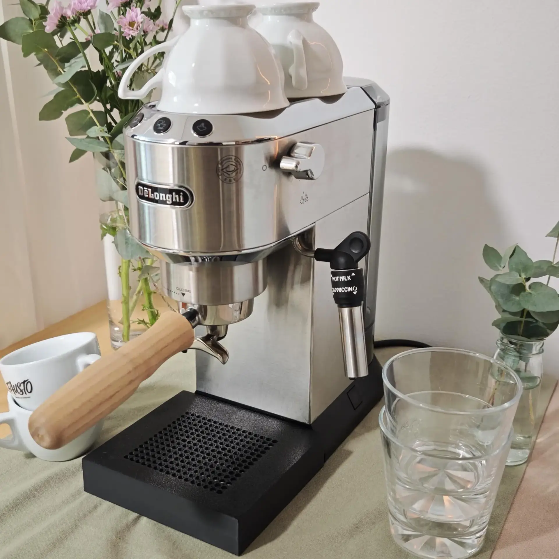 Super praktisch, da ich nun zwei Tassen nebeneinander unter bekomme. Außerdem ist es niedriger im Vergleich zum Original, sodass ich die Tassen nicht mehr kippen muss beim herausziehen. Sieht schick aus, passt sich genau an meine Dedica an. Versand war schnell. Vielen herzlichen Dank!