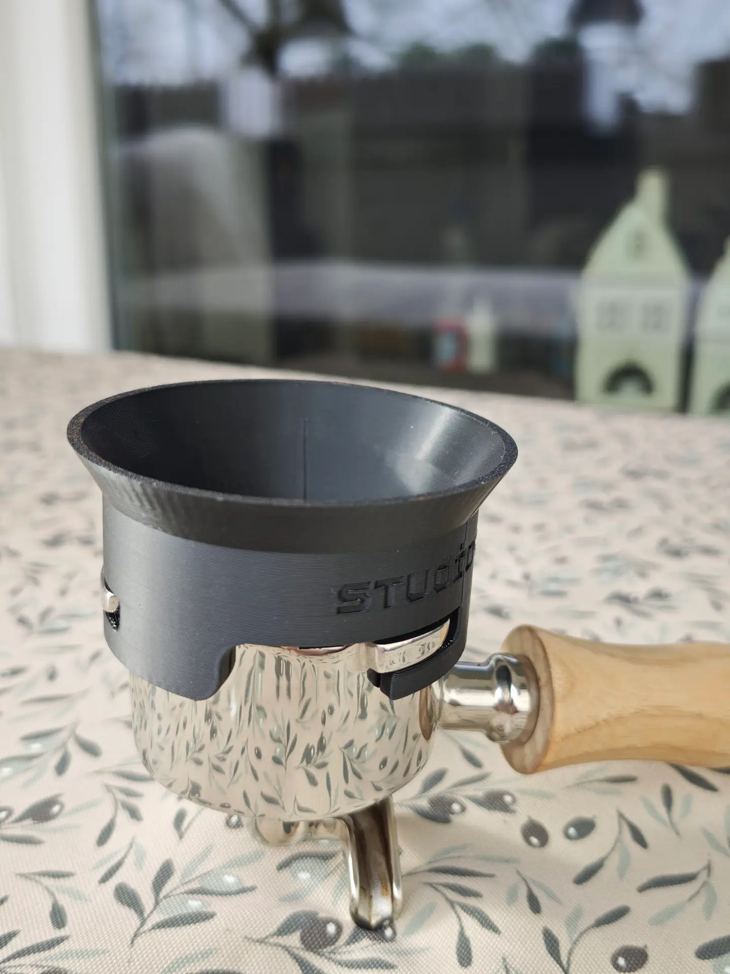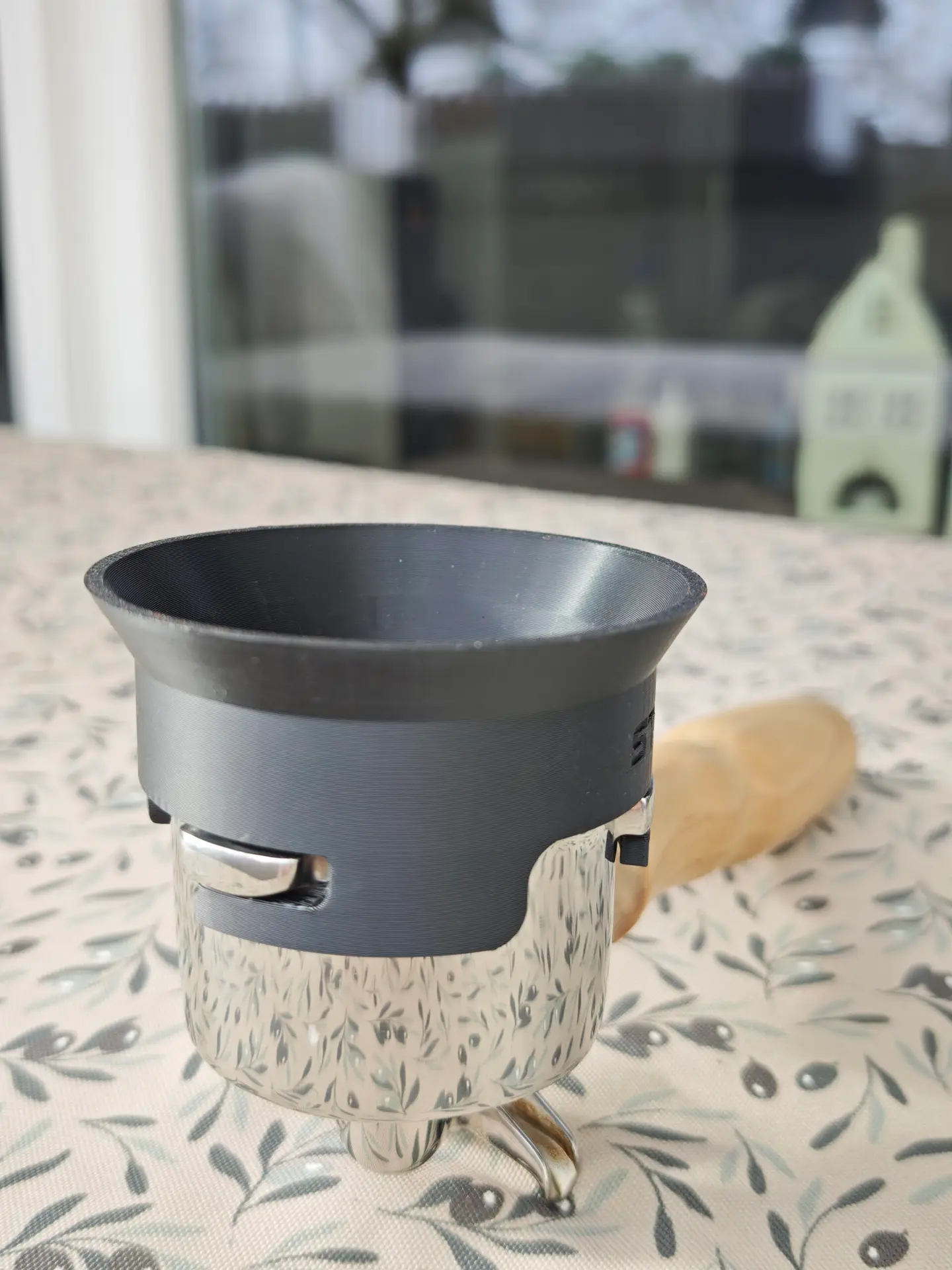 Jeder Trichter wird in meiner Münchner Werkstatt im präzisen 3D-Druckverfahren gefertigt. Er ist exakt auf 51mm Siebträger mit drei Laschen (z.B. De’Longhi Dedica Serie) abgestimmt.